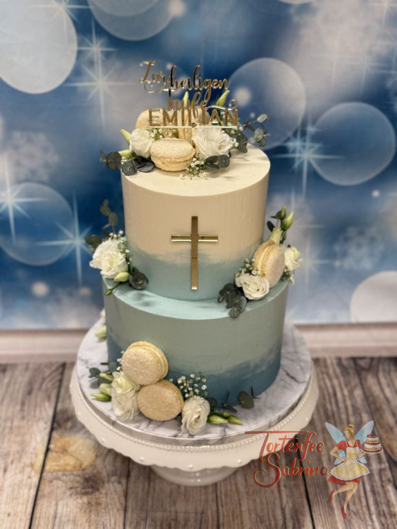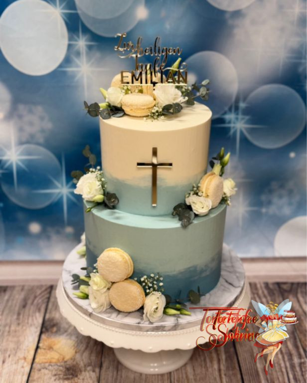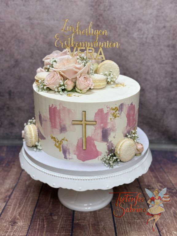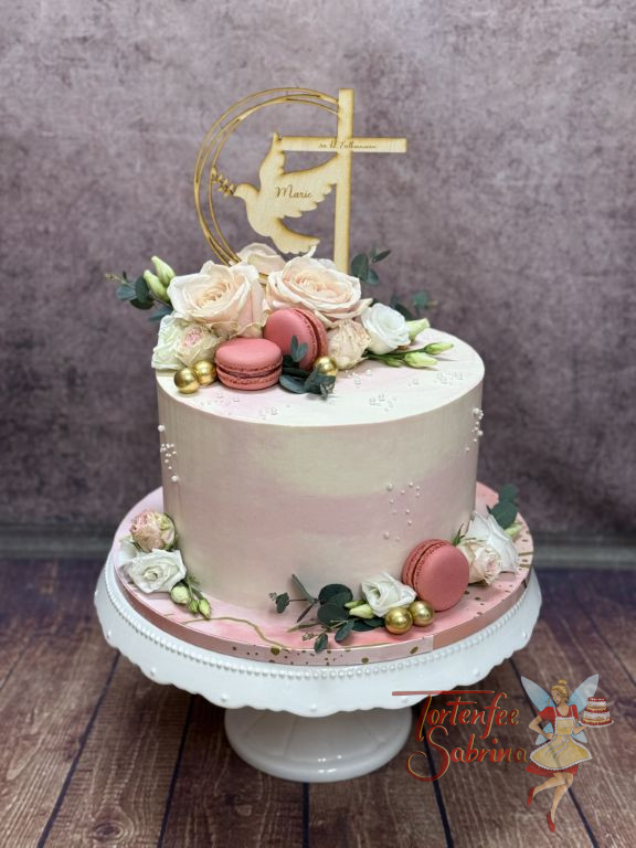 Erstkommunionstorte – Rosa Macarons