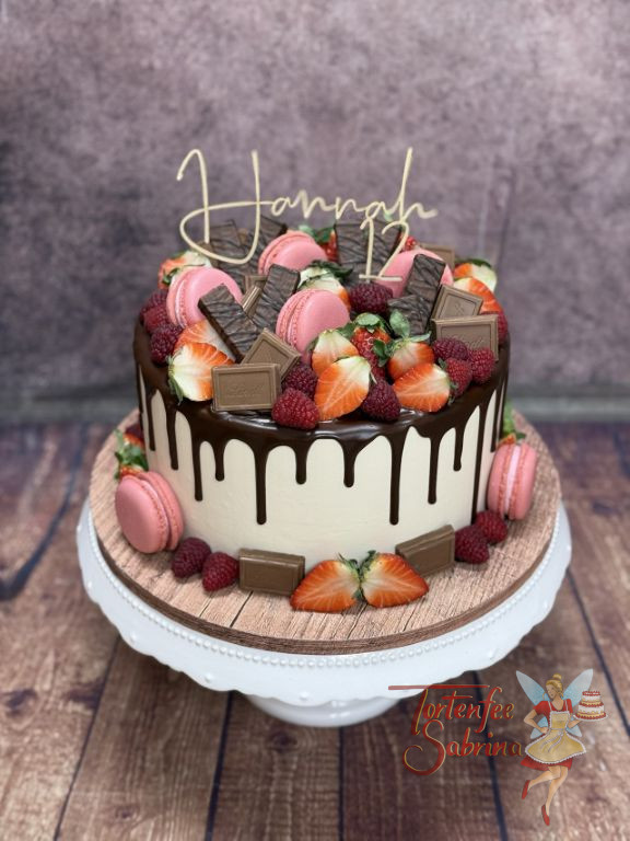 Drip Cake dieser kann mit vielen Früchten, Blumen und Süßigkeiten verziert werden.