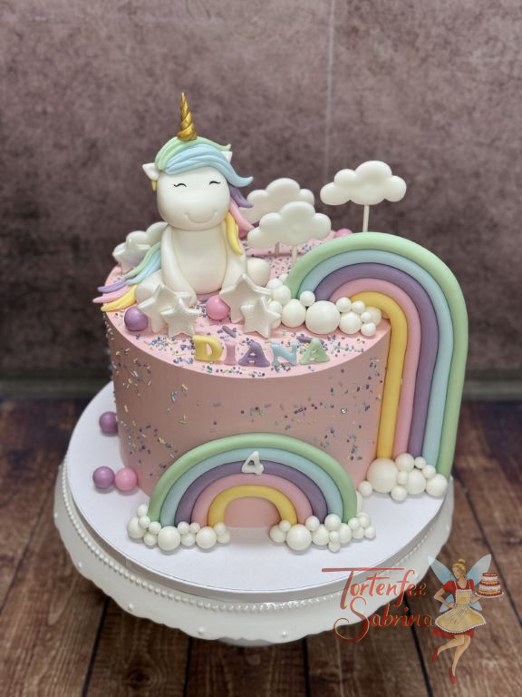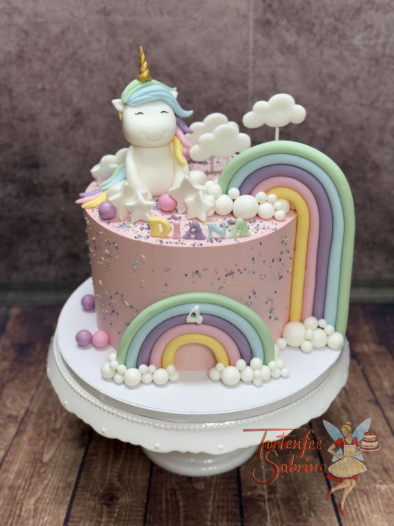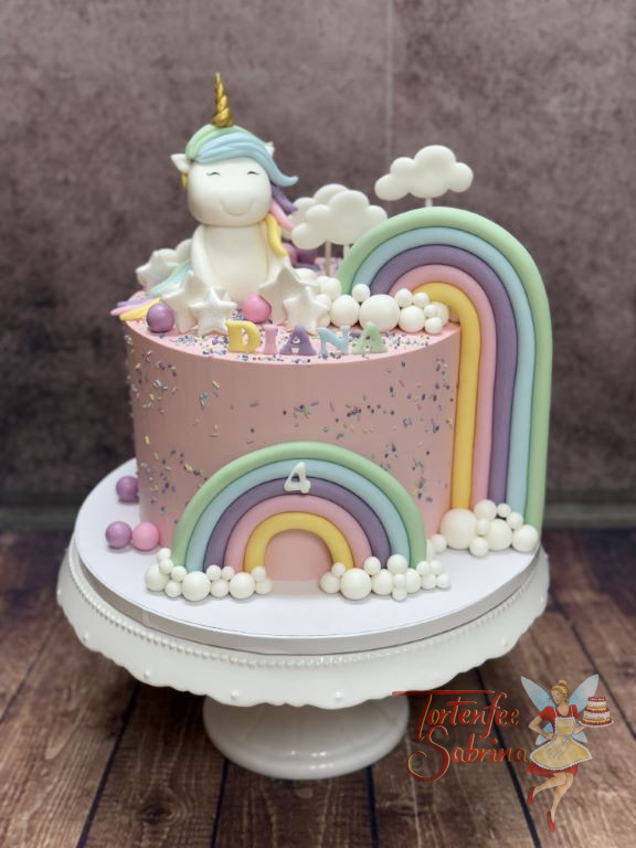 Gewünscht hat sich Thea heuer zu ihrem 5. Geburtstag eine Torte mit Regenbogen, Einhorn, einer Prinzessin und einer Fee 🤩
